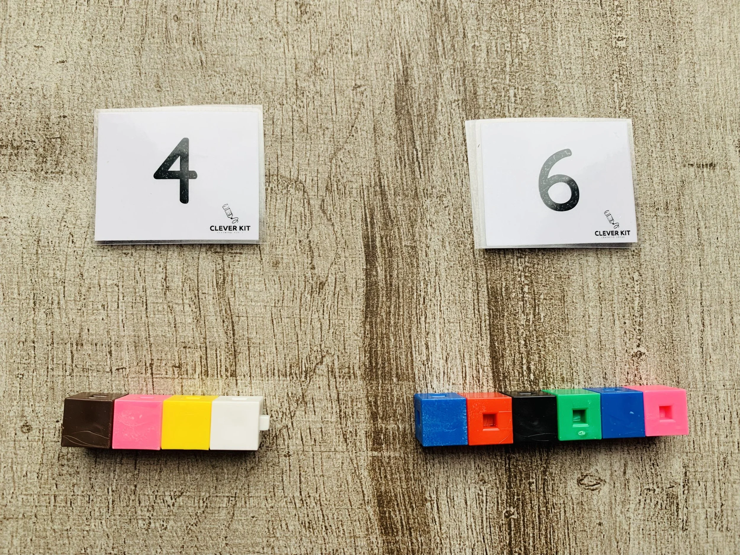 Choose 2 numbers from the number cards. Make them with the cubes. Compare the numbers. Which is greater?