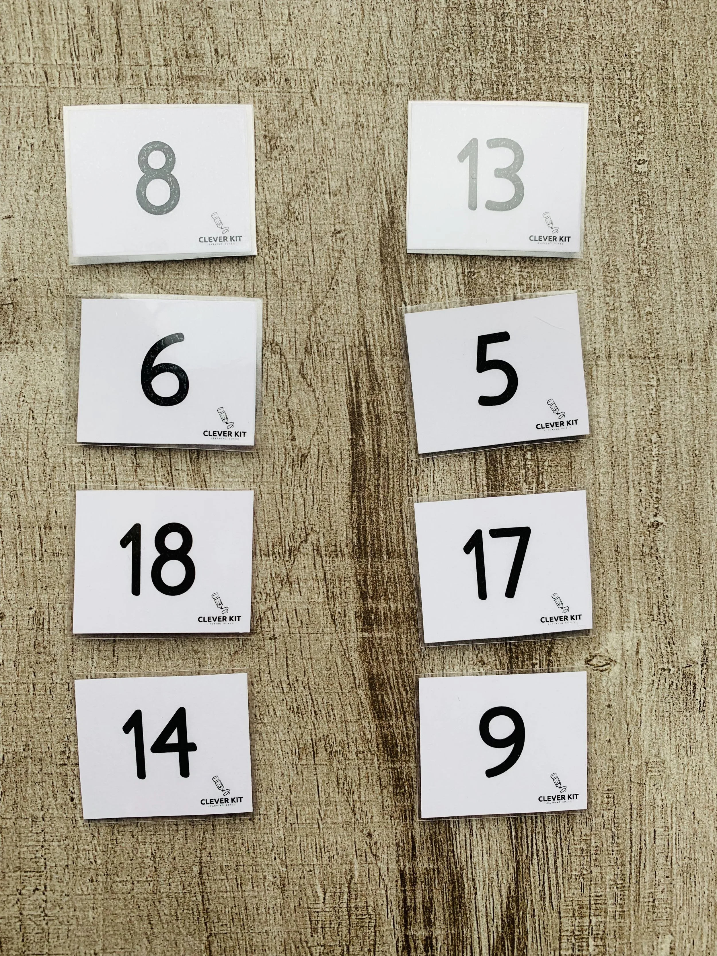 Lay out 3 consecutive numbers from the number cards. Hide the middle number. Identify which number comes in between.