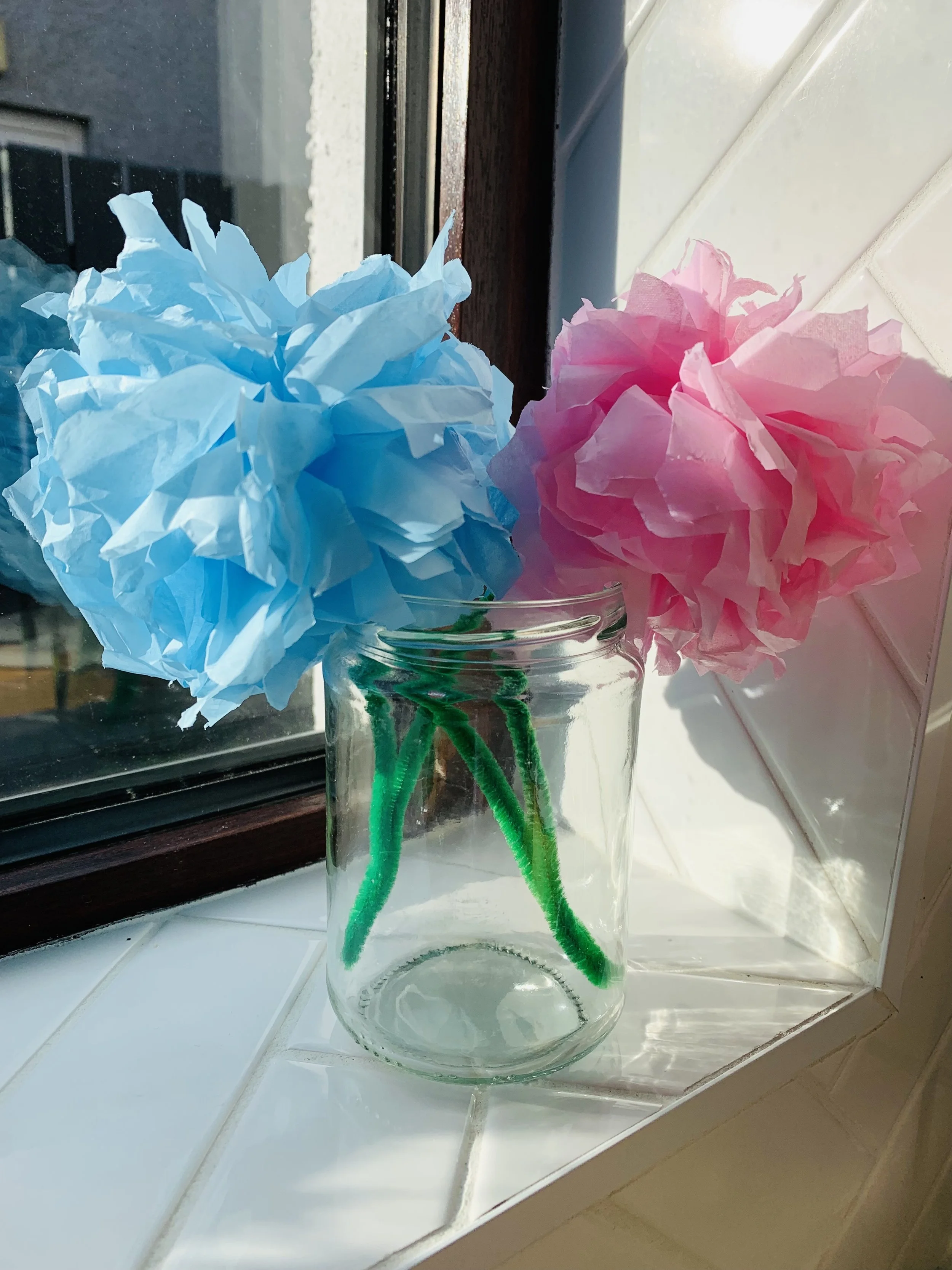 4. Wrap the pipe cleaner around the tissue paper and secure by twisting the top of the pipe cleaner around the stalk.