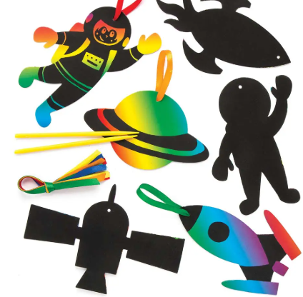 Use the pointed stick to scratch designs into your scratch art shape. Add a ribbon and hang it up!