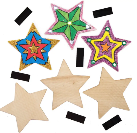 Decroate your wooden shape with felt tips or stickers. Stick on the magnet and put on your fridge!